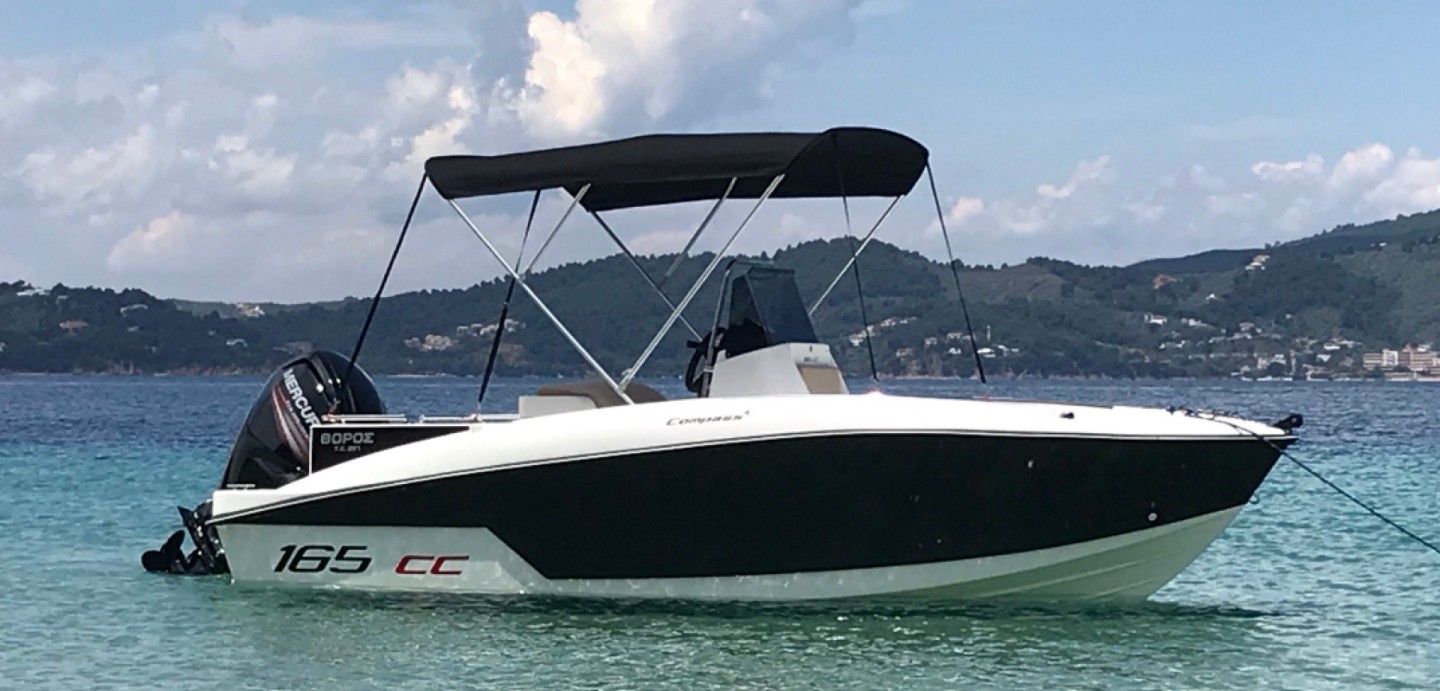 Have you come on holiday with your motorboat license? Our Compas 100hp boats are the smallest category we offer allowing you to access all those tiny, beautiful, secluded creeks and beaches. Each boat can accommodate up to 6 passengers and is equipped with a sun roof for ideal family fun in the sun!